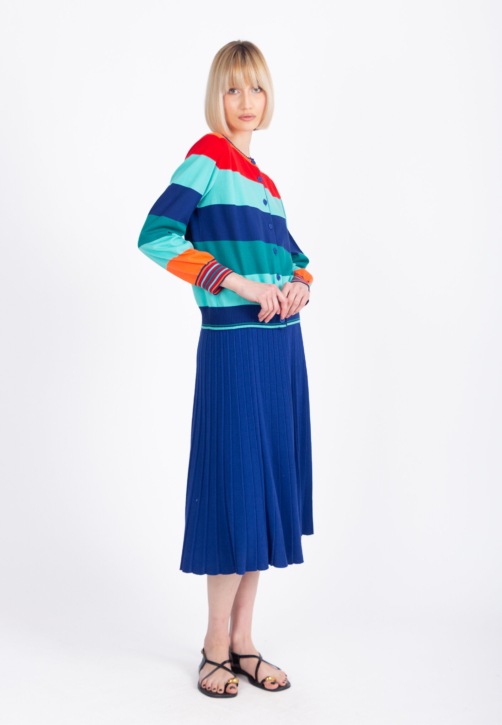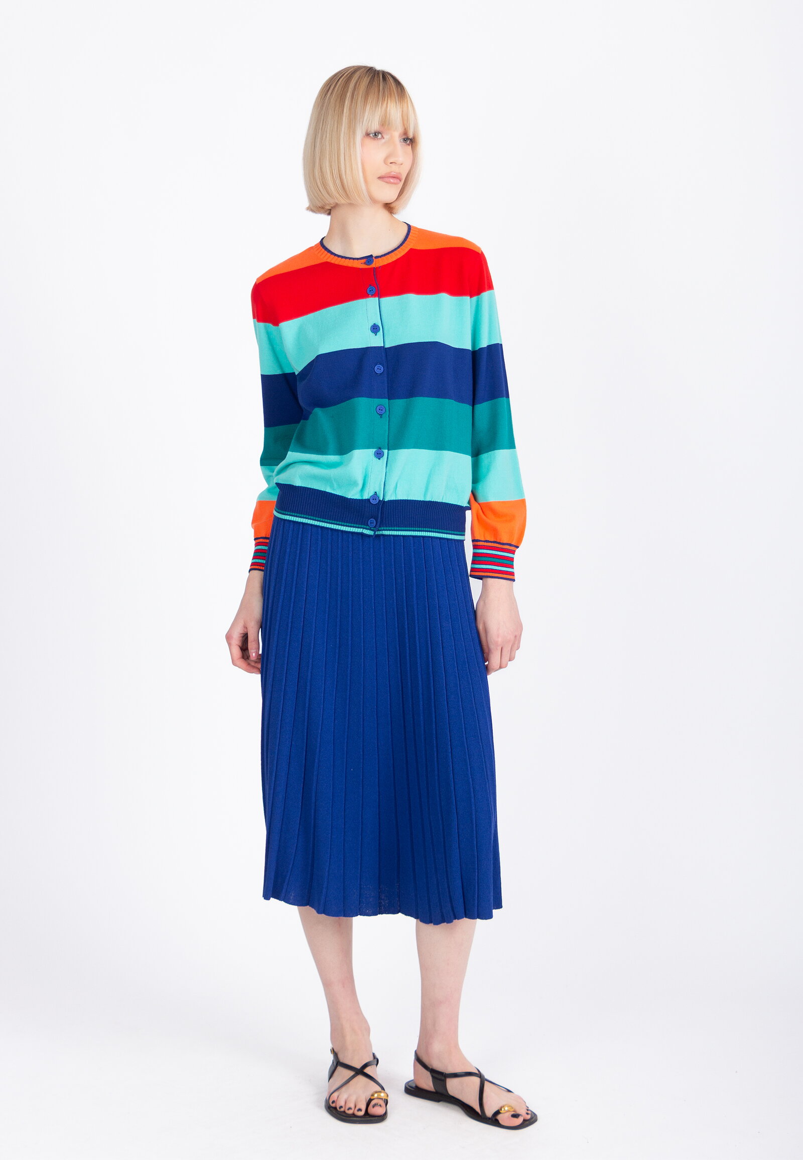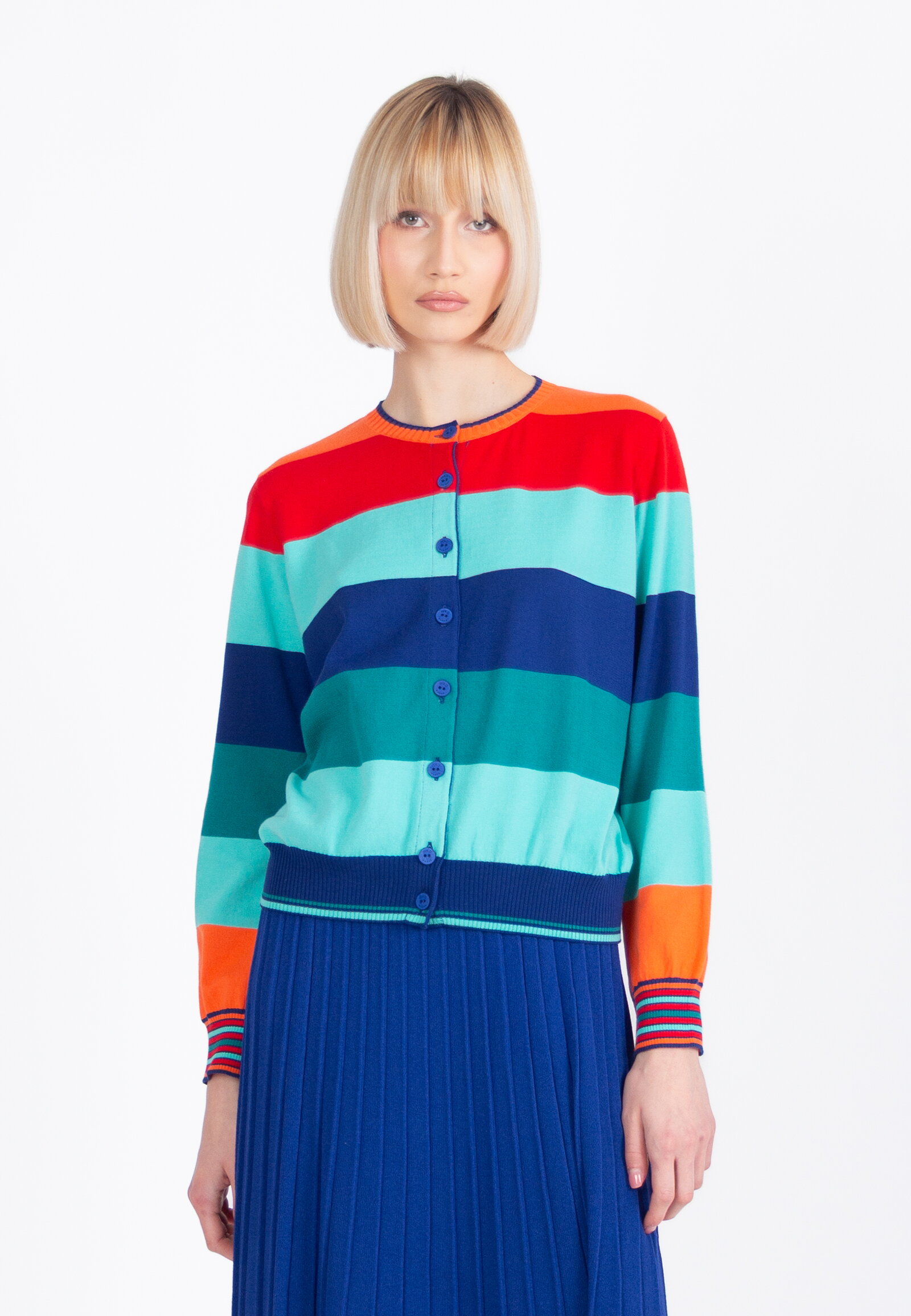 A classic cardigan knitted from pure cotton by IVKO Woman in a bold jacquard stripe pattern. Vivid colour blocks create a dynamic, eye-catching piece. Cotton provides natural breathability that softens with every wash.