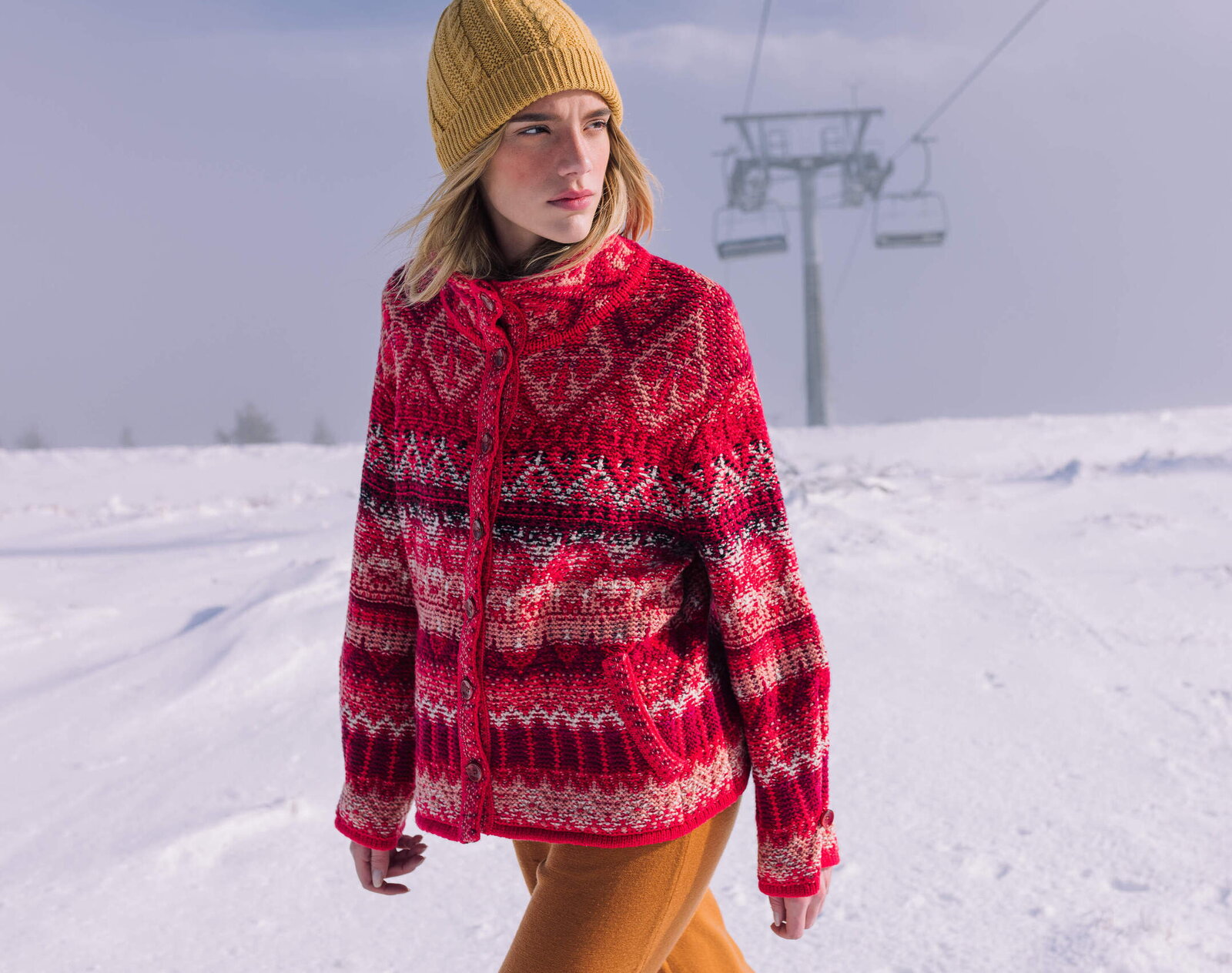Jacquard jacket in a wool blend with a rollneck and the Re-Dandy pattern. Bold design and snug texture combine in a style made for colder days.